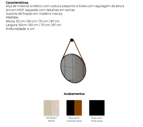 Largura: 50cm / 60 cm / 70 cm / 87 cm