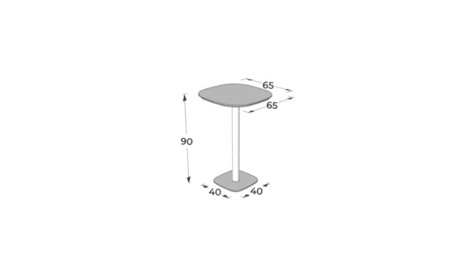 - Tampo em MDF com espessura de 25 mm, com bordas usinadas com chanfro em 45°.