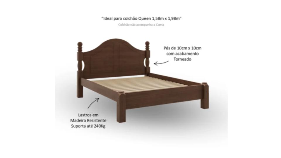 • Seu tamanho é ideal para colchão de casal 1,58m x 1,98m e tem capacidade de suportar um peso máximo de 200Kg distribuídos.