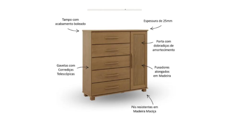 - Os puxadores das portas e gavetas são de madeira maciça,
