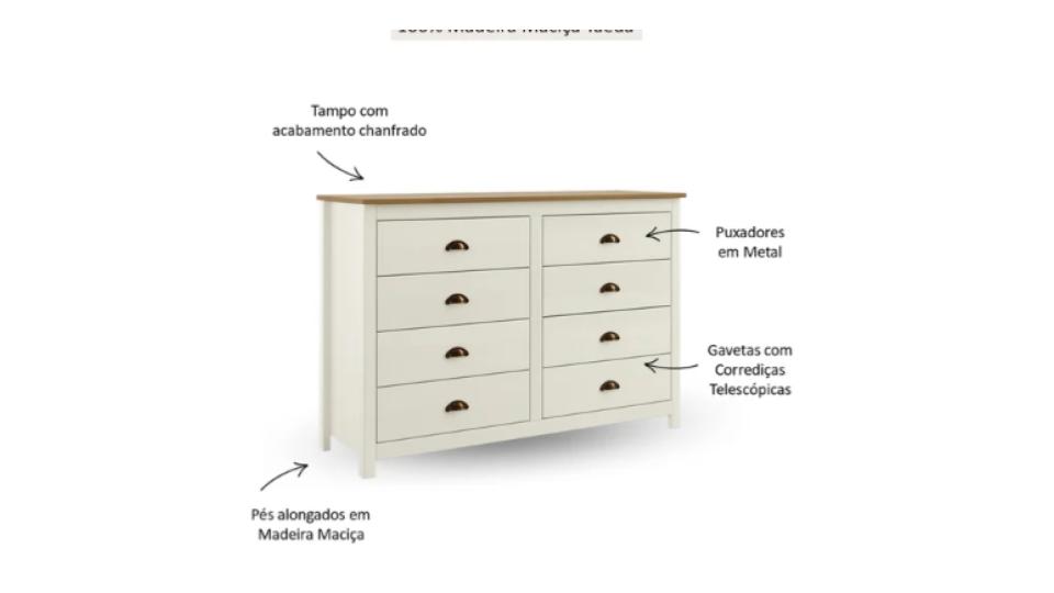 possui oito gavetas com ótimo espaço interno para armazenar objetos de forma organizada.