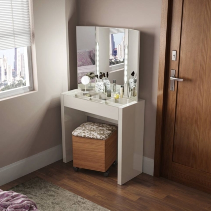 Penteadeira moderna 01 gaveta e espelhos articulados com led
