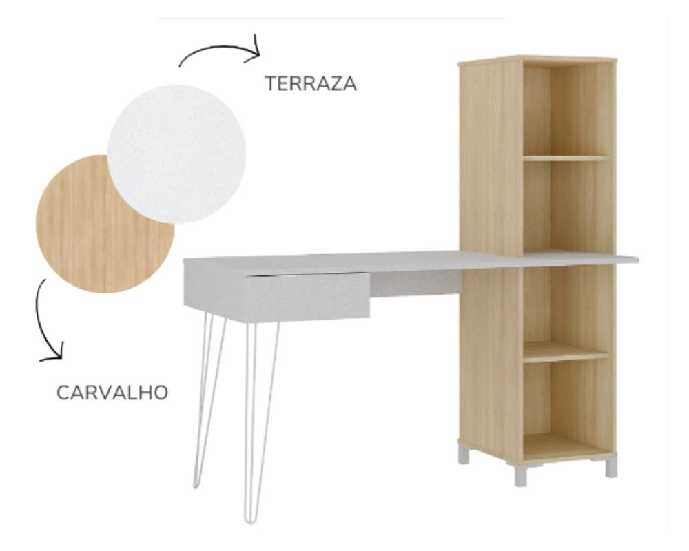 – Tampo da mesa em MDP 18mm com fita de borda ABS 2mm de espessura;