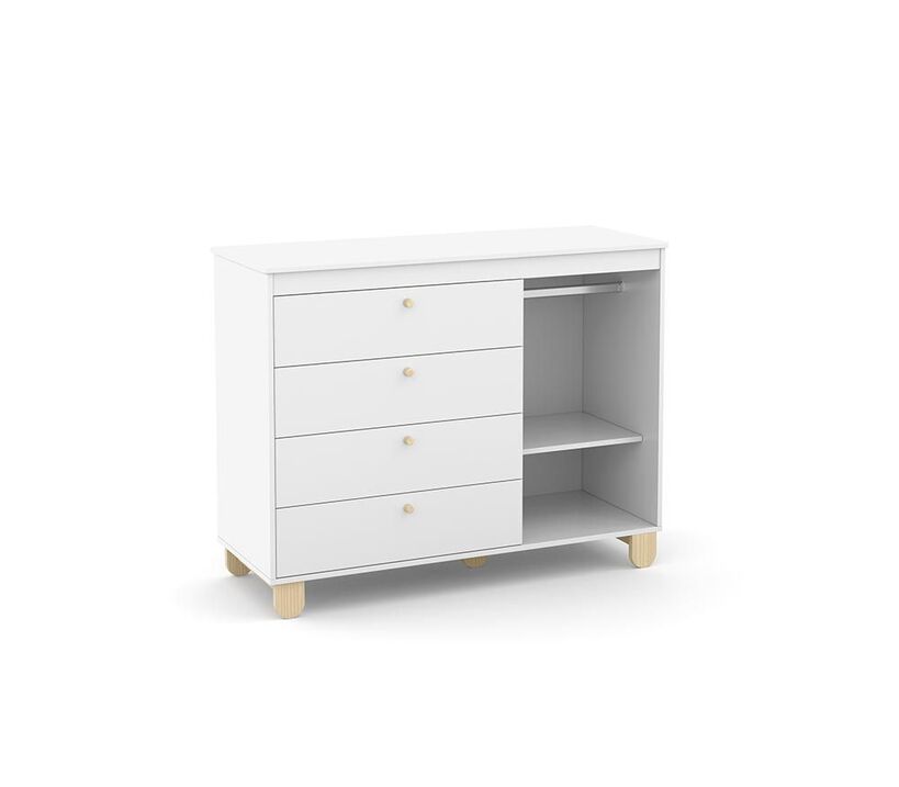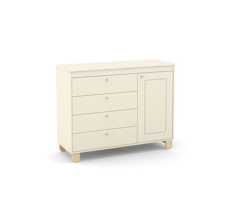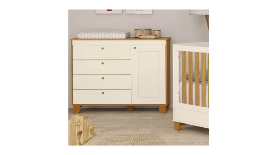 * 100% MDF * Corrediças telescópicas * Puxadores de madeira, * Base estrutural em madeira * Detalhe em baixo relevo na porta.