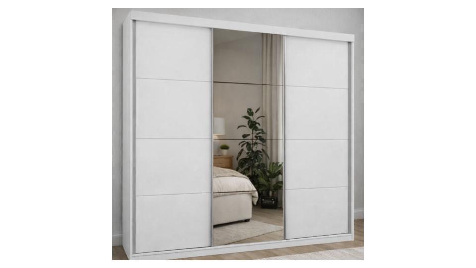O Guarda Roupa Solteiro 2 Portas de Espelho 4 Gavetas Foscarini possui amplo espaço interno perfeito para organizar suas roupas e demais pertences. É produzido 100% em MDF, material de primeira linha, com acabamento UV fosco/texturizado de excelente qualidade que garante brilho e proteção em toda a superfície do móvel por muito mais tempo. Possui 2 portas deslizantes em trilhos de alumínio. Seu sistema de montagem é realizado através de parafusos, minifix e cavilhas. Sua estrutura principal é de 18mm com tampo central em 25mm e possui 4 gavetas com corrediças telescópicas que proporcionam abertura total e deslize suave. Medidas montado (A x L x P): 241 x 180 x 60 cm. Ideal para renovar seu quarto. Produto resistente moderno e sofisticado!