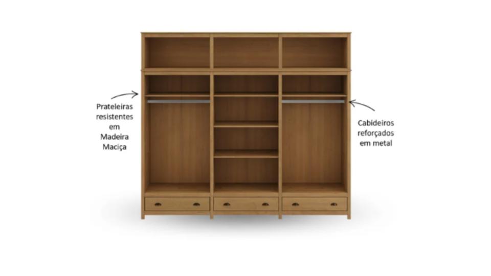 •  possui prateleiras em madeira maciça, formando 4 nichos espaçosos