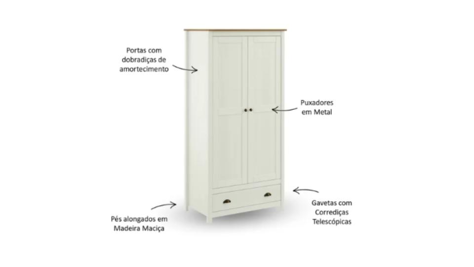 possui corrediças telescópicas, que deslizam com suavidade e de forma silenciosa. As portas possuem dobradiças metálicas que também garantem qualidade ao produto.