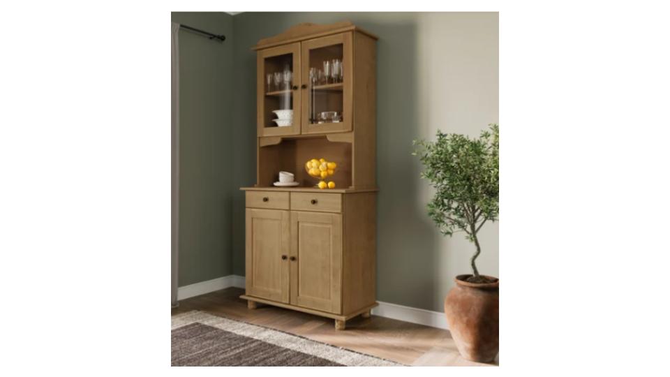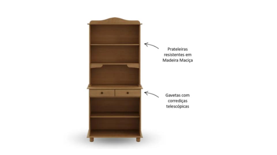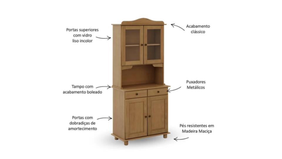 possui duas portas na parte inferior, toda em madeira maciça,