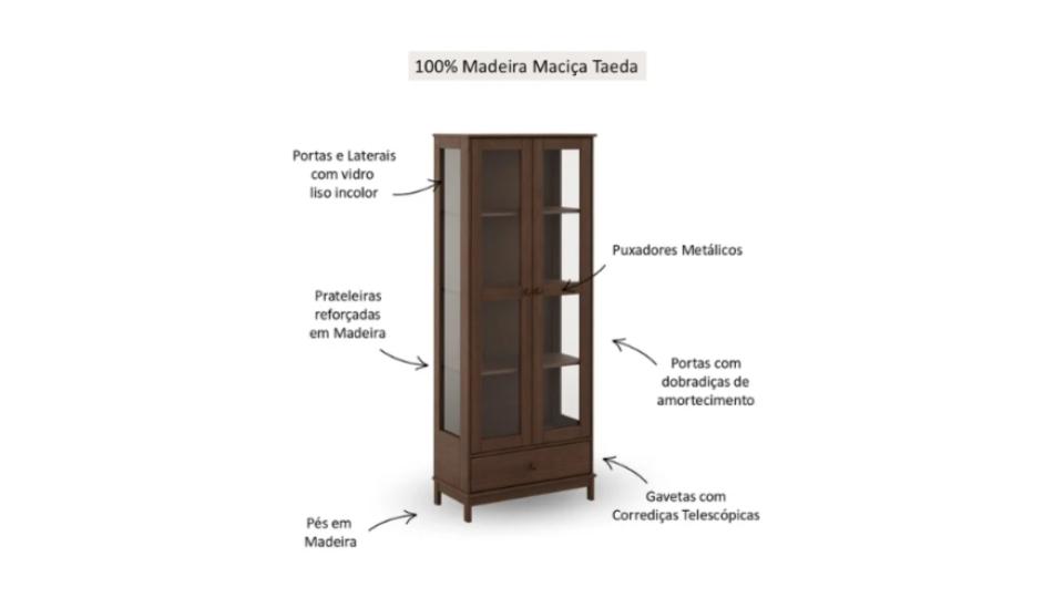 • As laterais e portas da cristaleira possuem vidro liso incolor