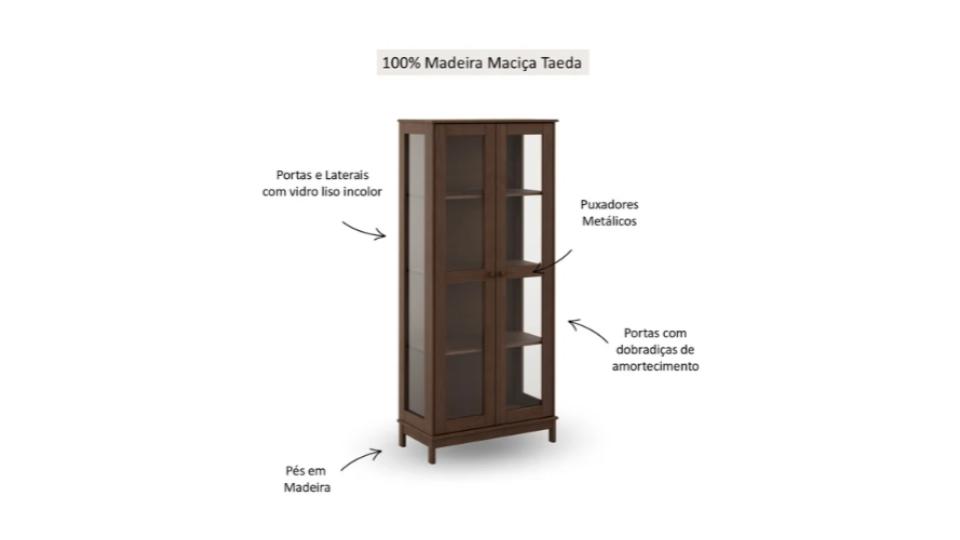 • As laterais e portas da cristaleira possuem vidro liso incolor