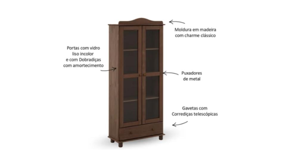 Cristaleira Vitrine 2 Portas 1 Gaveta