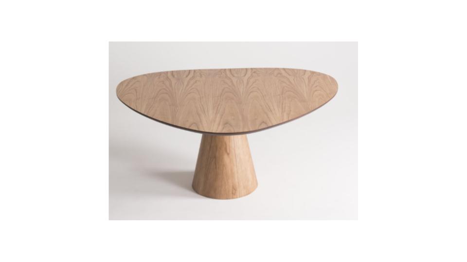 base em cone multilaminado com lamina madeira tingida com tampo Orgânico MDF maciço 25 mm com acabamento em lamina madeira cinamomo tingido