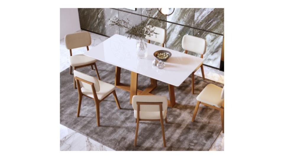 – Design dos pés em formato cruzado oferecendo visual sofisticado.