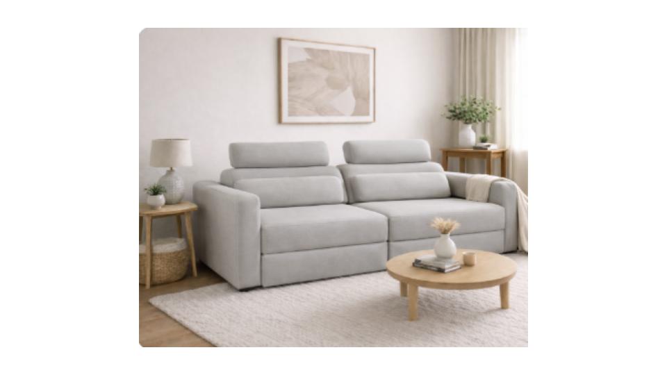 Estrutura em madeira maciça de eucalipto. Assento estofado com espuma de boa densidade e revestido com tecido de alta qualidade. Produto fornecido montado