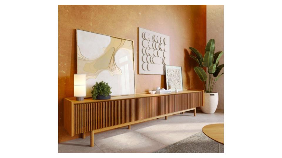 Frente das gavetas com ripas em madeira maciça