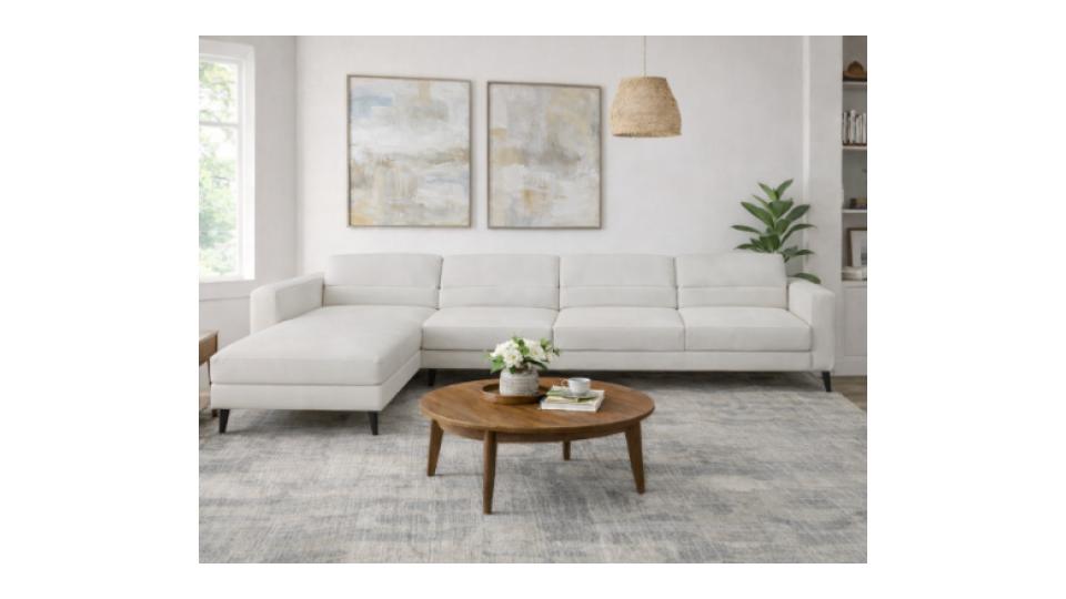 Almofadas de encosto soltas com opção de pufe espelhado.