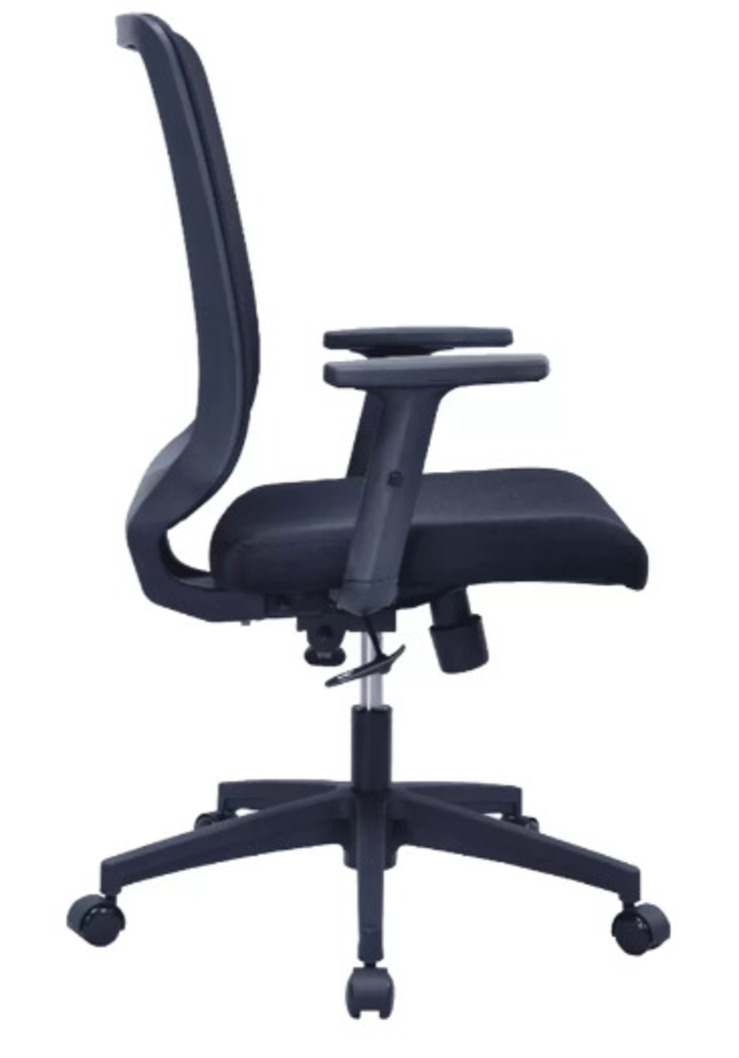 Características: Regulagem de altura do assento | Regulagem de altura dos braços | Assento com espuma injetada | Sistema sincronizado (travamento do encosto em qualquer posição) | Regulagem da inclinação do encosto